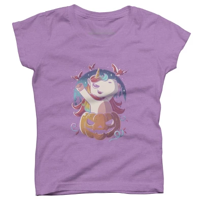 - This magical Halloween design features a rainbow unicorn in a cloak popping out of a jack-o-lantern and reaching for bats while a full moon silhouettes a creepy town.