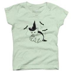 Girl’s Design By Humans Halloween Ghost Cat By ArtStyleAlice T-Shirt