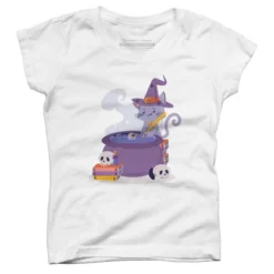 Girl’s Design By Humans Halloween Kitty Cauldron By Machmigo T-Shirt