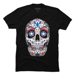 Men’s Design By Humans July 4th American Sugar Skull By T-Shirt