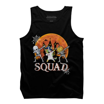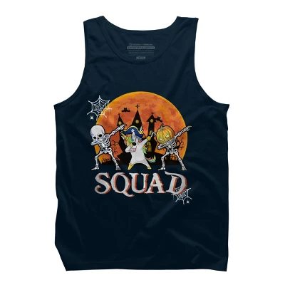 - Create your own spooky squad with this awesome design featuring a skeleton, pirate unicorn, and pumpkin skeleton, dabbing in front of the silhouette of a haunted house on a full moon night with bats and spider webs with the the text “Squad”.
