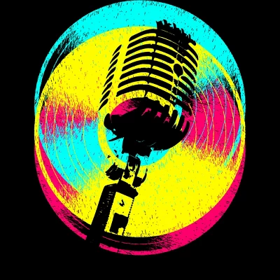 - Get ready to jam with this colorful design featuring rainbow vinyl records stacked on each other with the silhouette of a microphone in the middle.