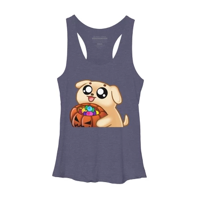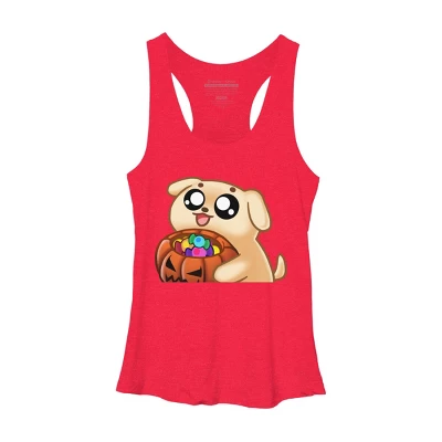 - This adorable design features a cartoon puppy holding a jack-o-lantern bowl full of colorful candy.