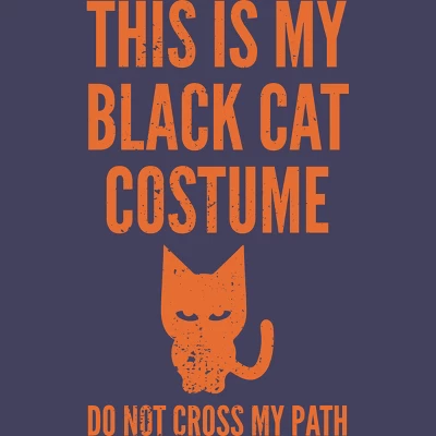 - This claw-some Halloween design features the silhouette of an angry cat with the text “This Is My Black Cat Costume. Do Not Cross My Path”.