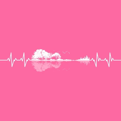 - Become one with music and nature with beautiful design featuring a forest silhouette reflecting into water creating a guitar shape on a heart beat horizon, while birds fly in the distance