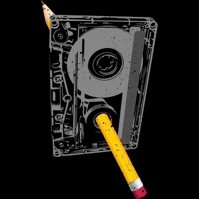 - Keep it reel with this cool design featuring a gray cassette tape being rewound with a pencil!